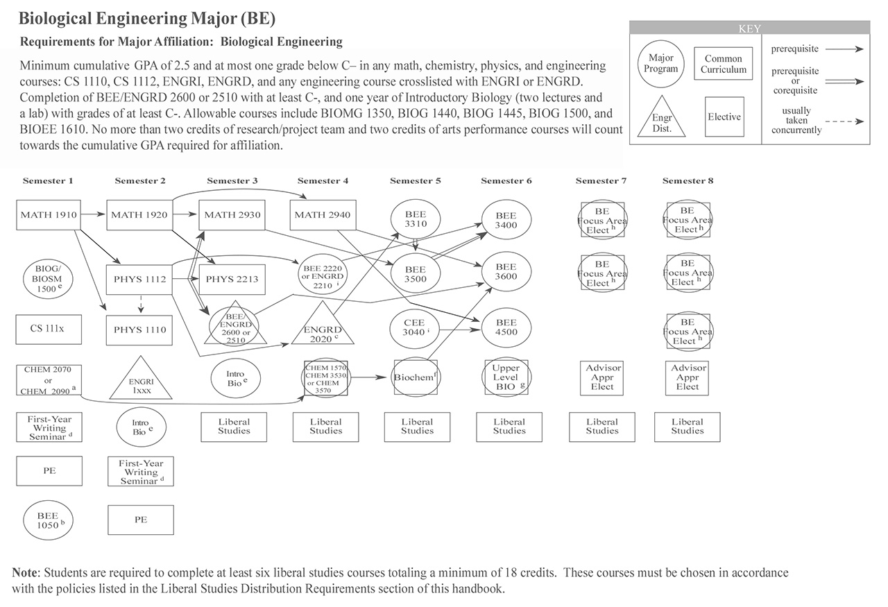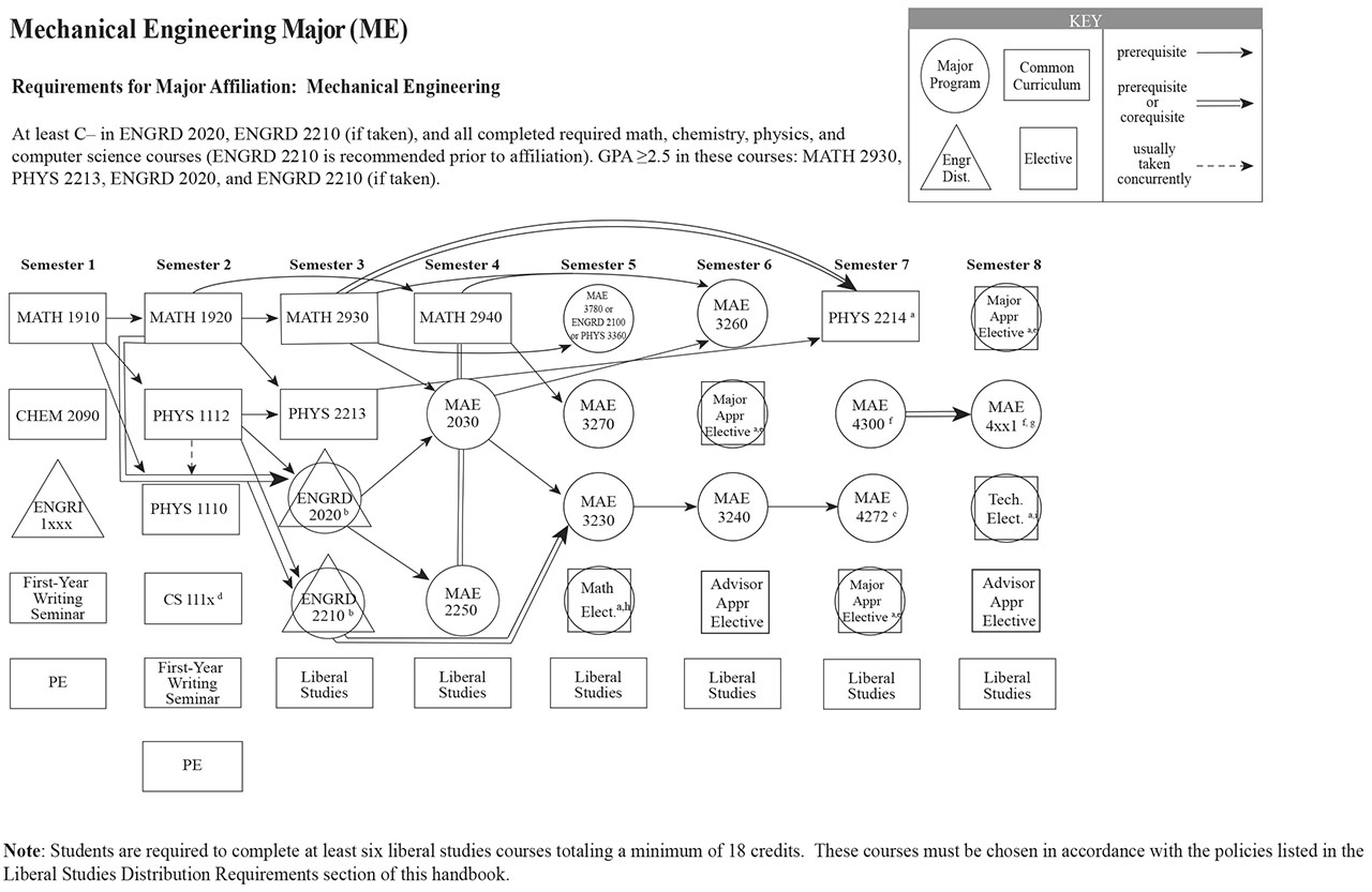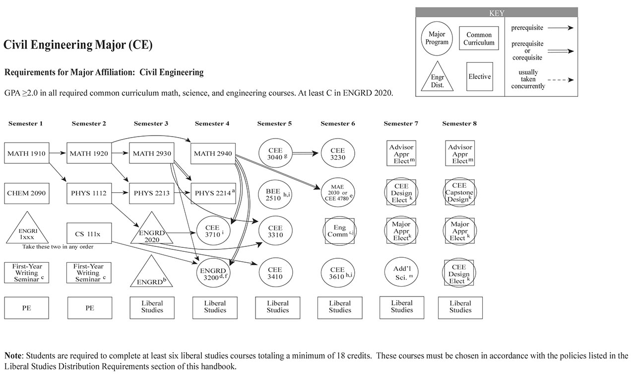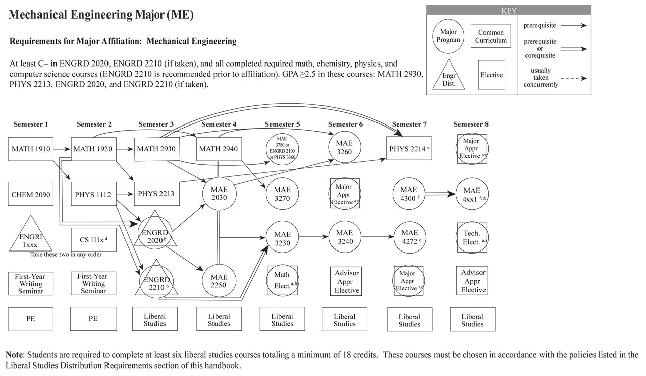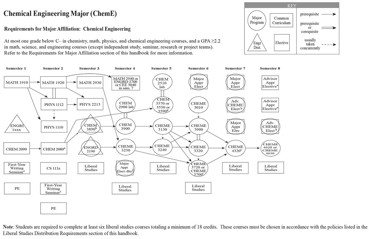 Each of the Bachelor of Science engineering majors, with the exception of the Independent Major, have a helpful visual flowchart that outlines a possible pathway toward the degree, semester by semester. Adjacent to each visual flowchart is a link to the digital handbook’s accessible version.