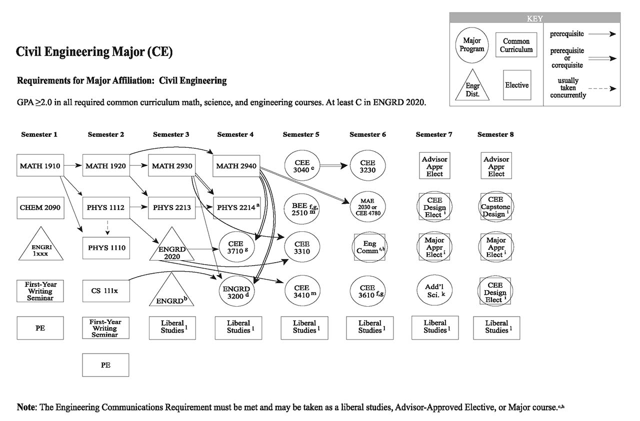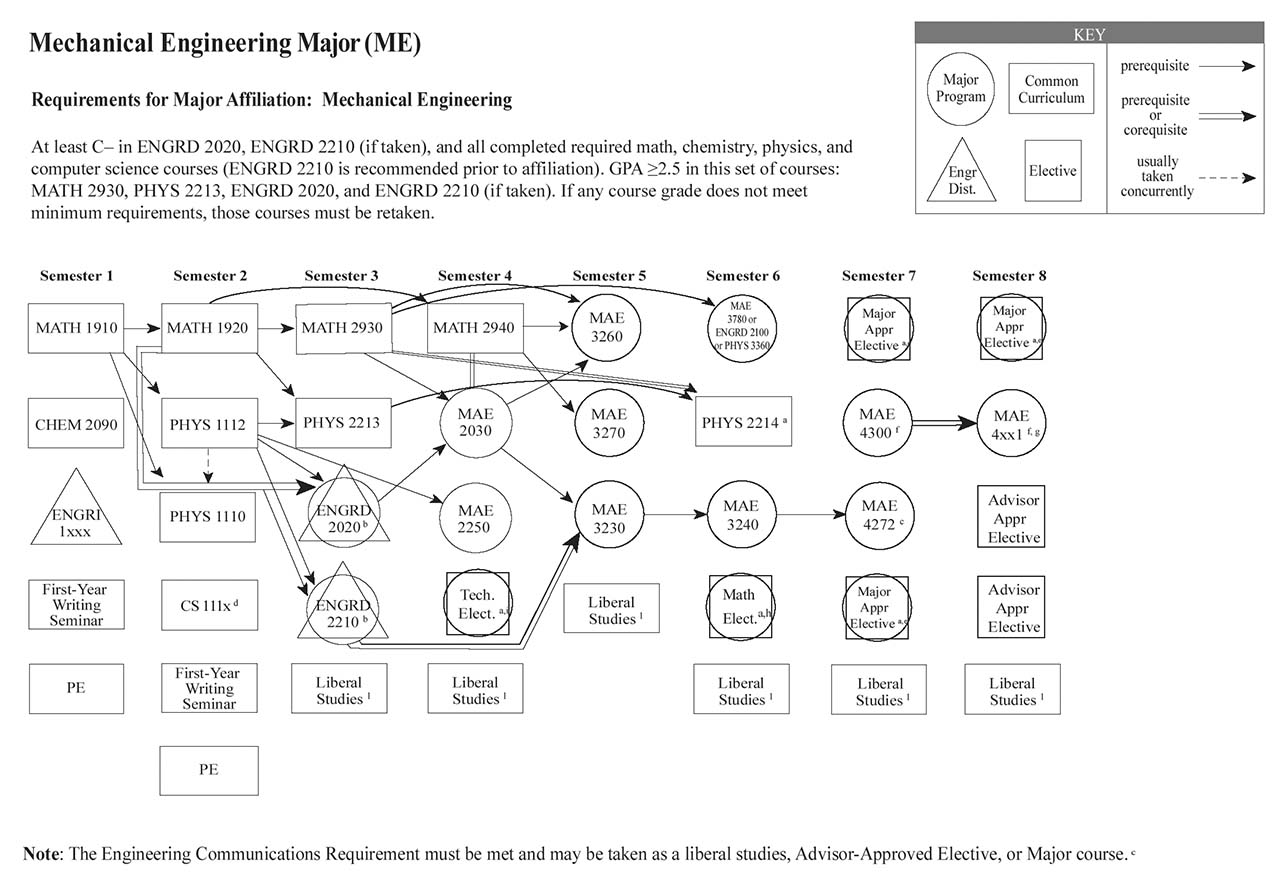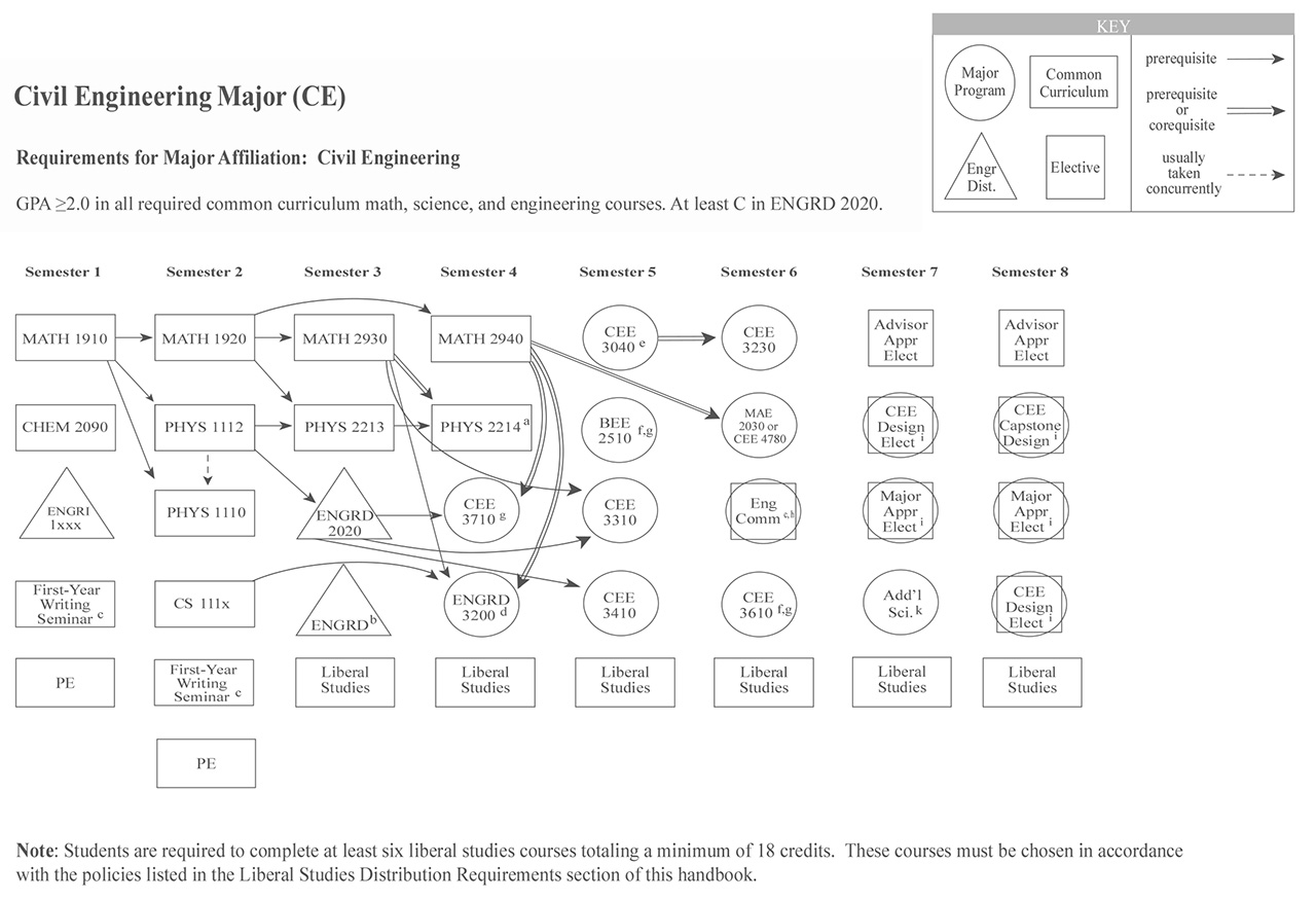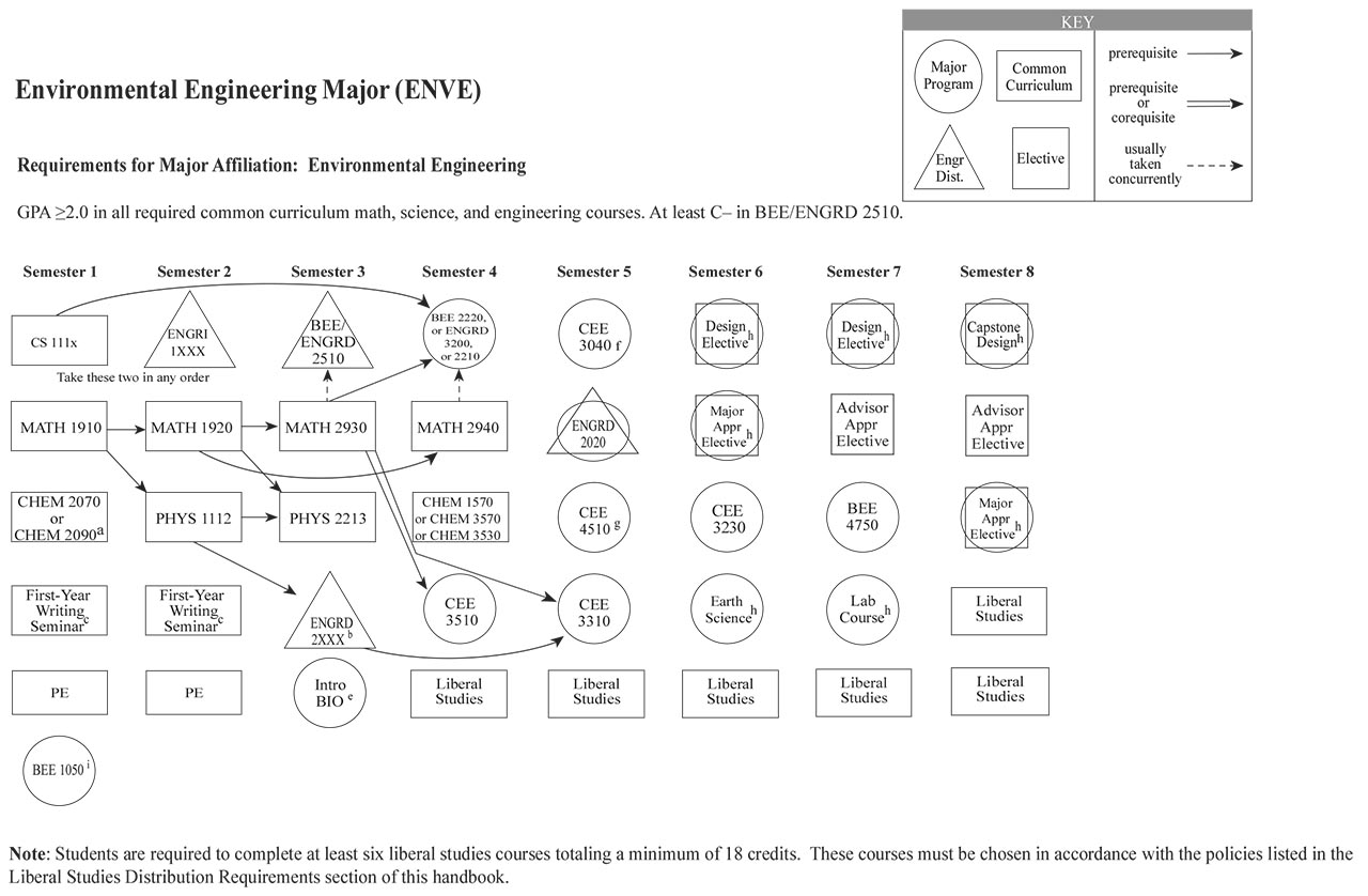 Each of the Bachelor of Science engineering majors, with the exception of the Independent Major, have a helpful visual flowchart that outlines a possible pathway toward the degree, semester by semester. Adjacent to each visual flowchart is a link to the digital handbook’s accessible version.