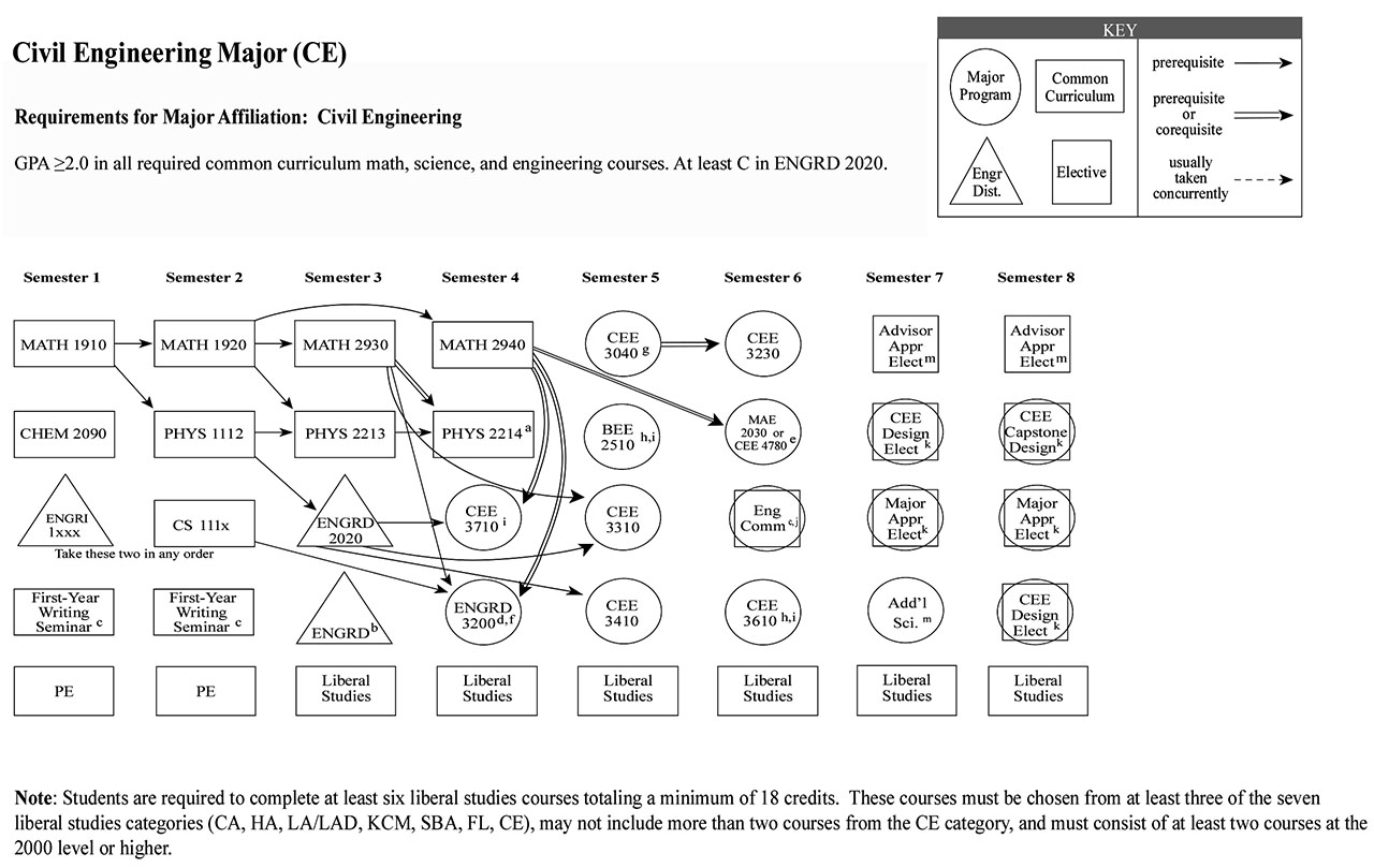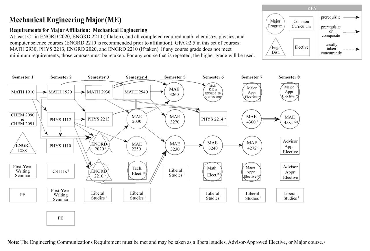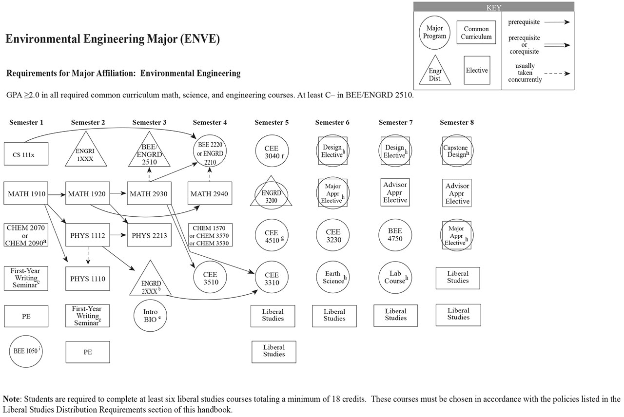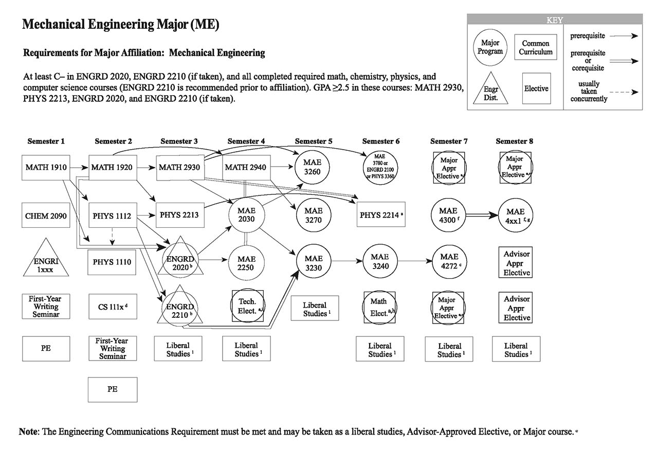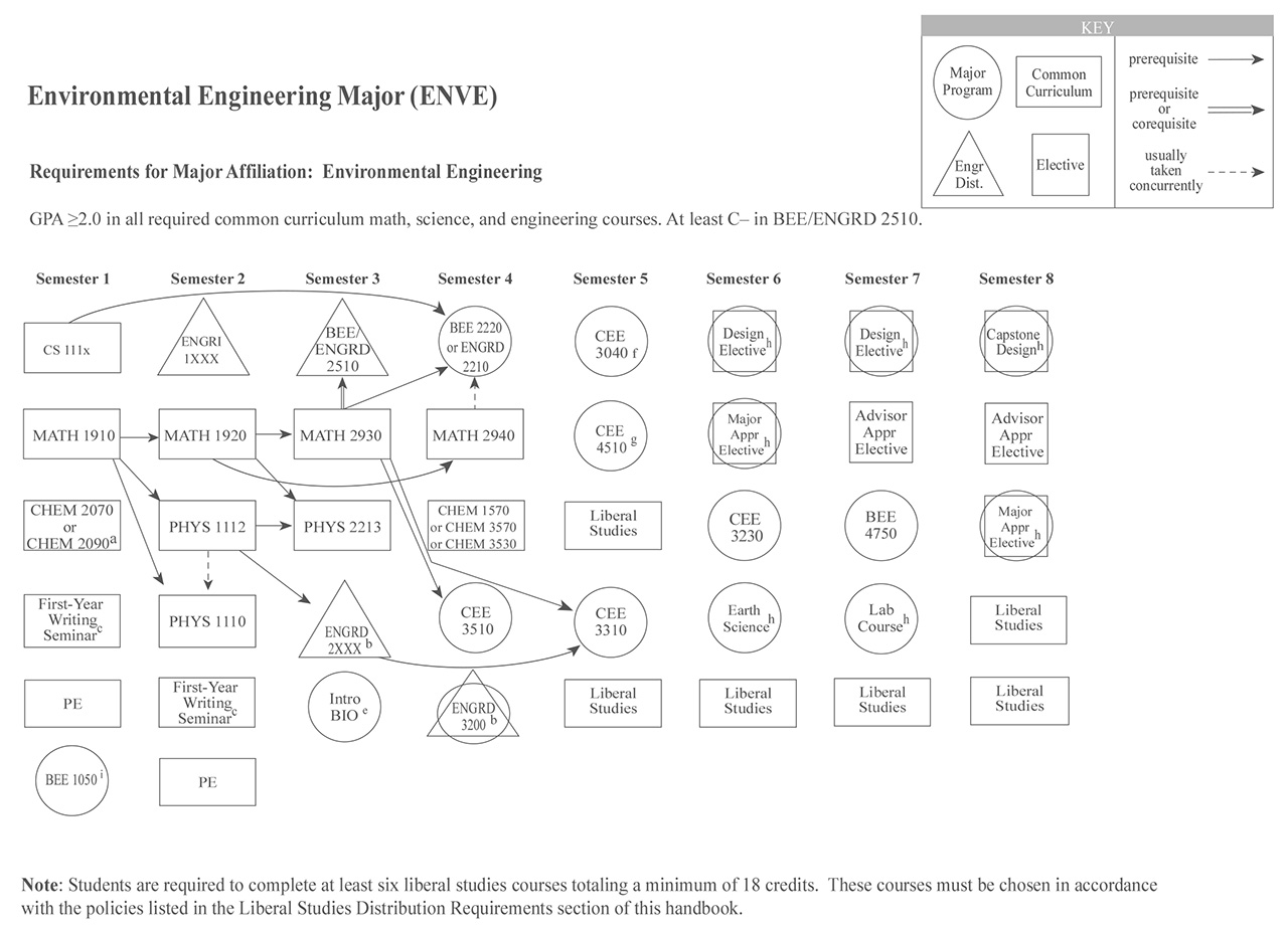 Each of the Bachelor of Science engineering majors, with the exception of the Independent Major, have a helpful visual flowchart that outlines a possible pathway toward the degree, semester by semester. Adjacent to each visual flowchart is a link to the digital handbook’s accessible version.