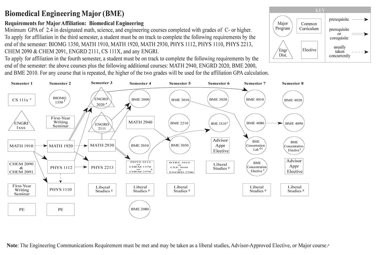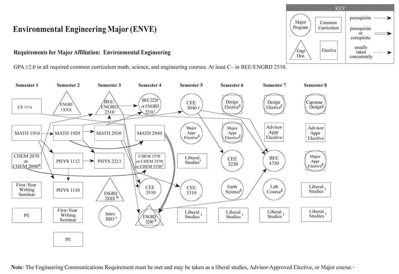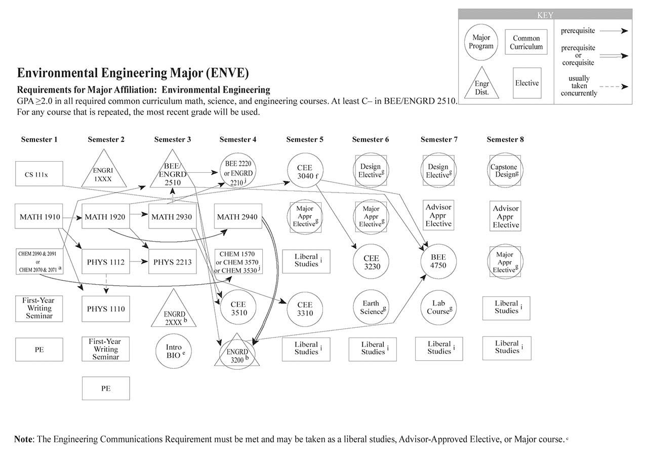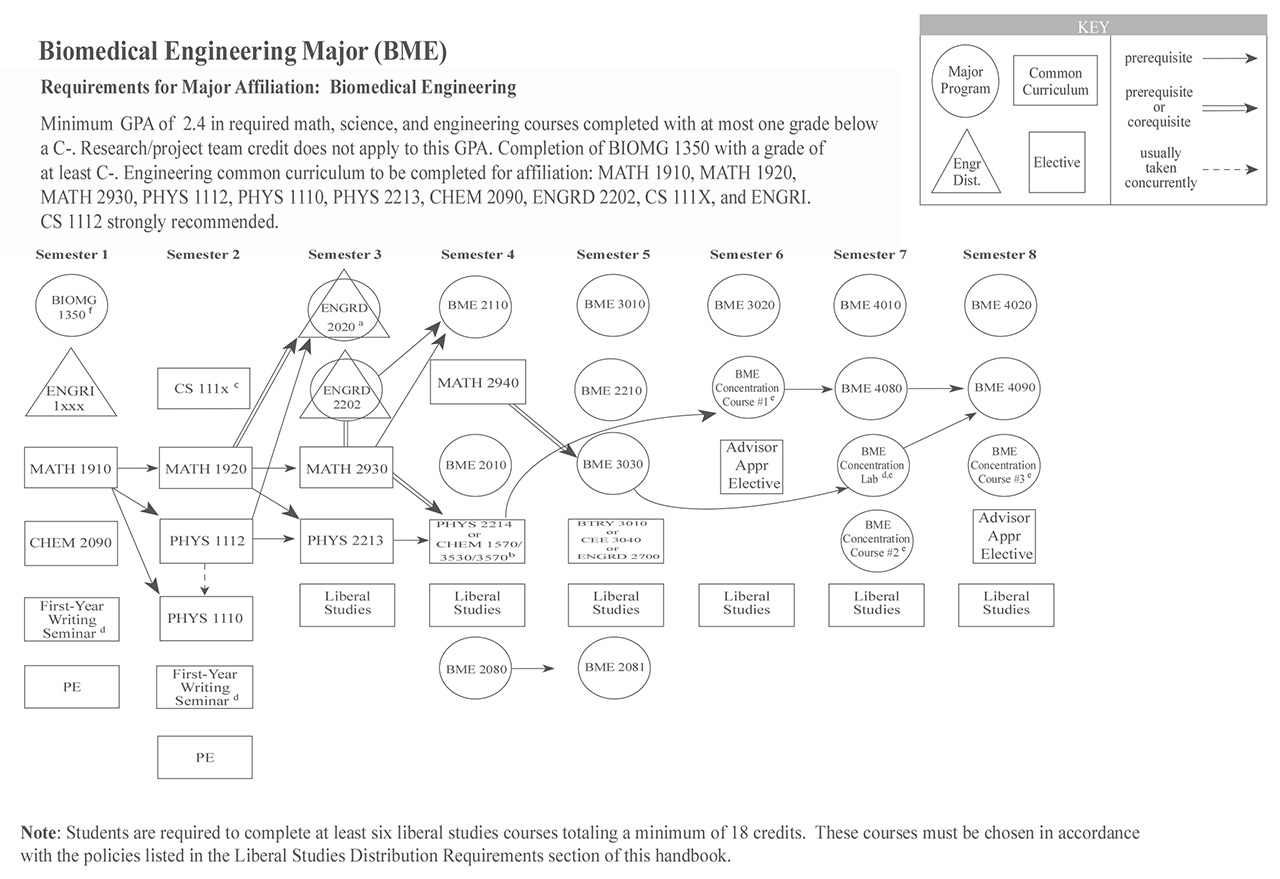 Each of the Bachelor of Science engineering majors, with the exception of the Independent Major, have a helpful visual flowchart that outlines a possible pathway toward the degree, semester by semester. Adjacent to each visual flowchart is a link to the digital handbook’s accessible version.